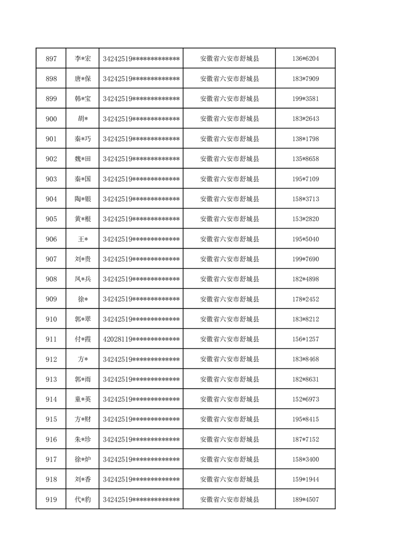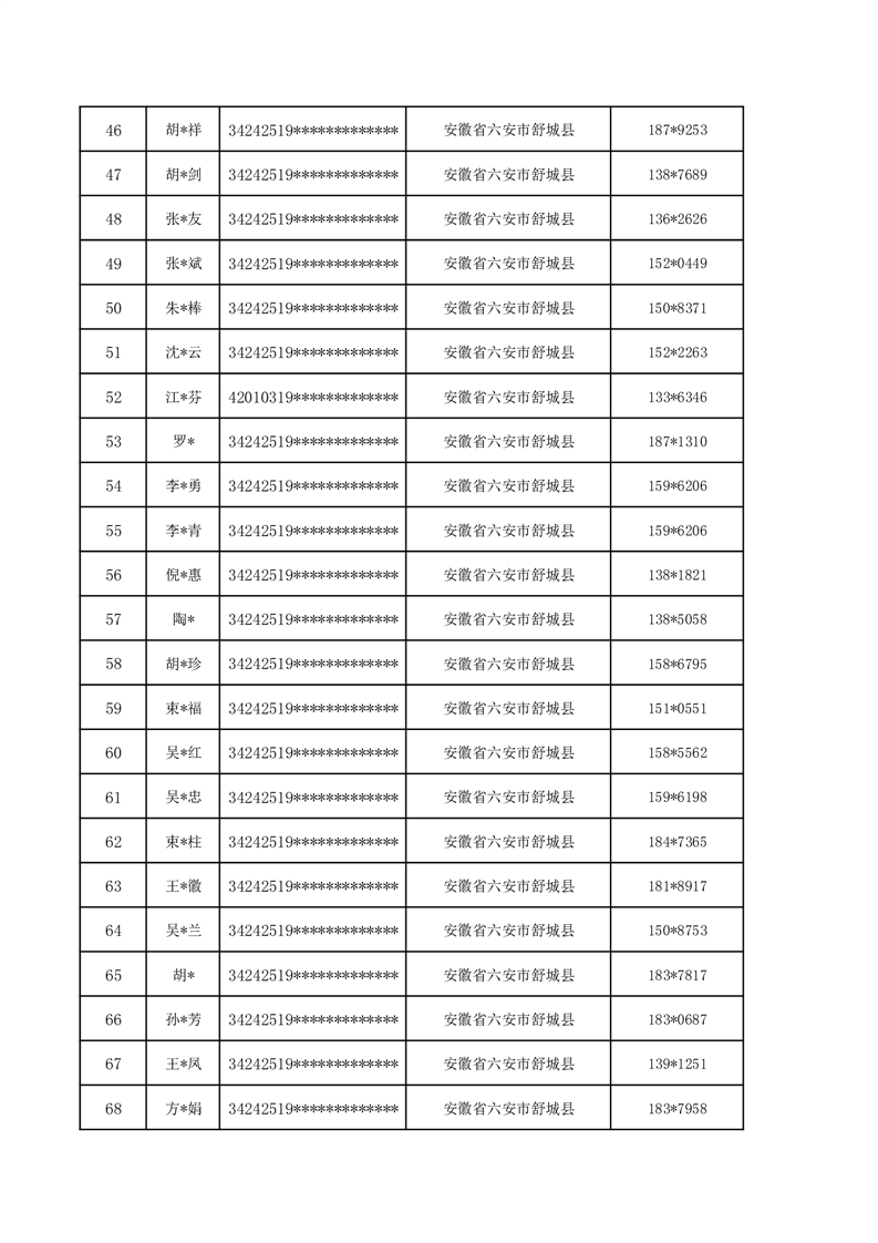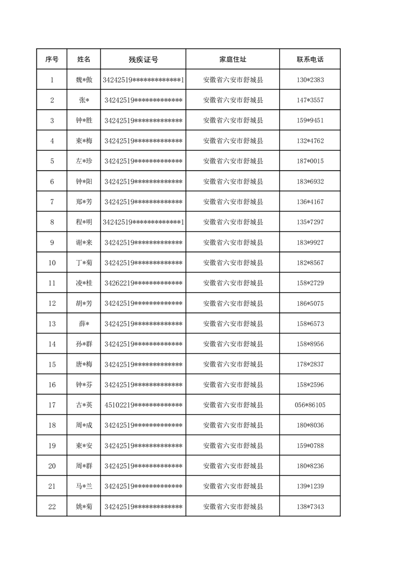 【实施情况】舒城县2023年贫困精神残疾人药费补助花名册(一)