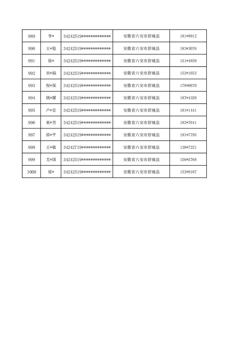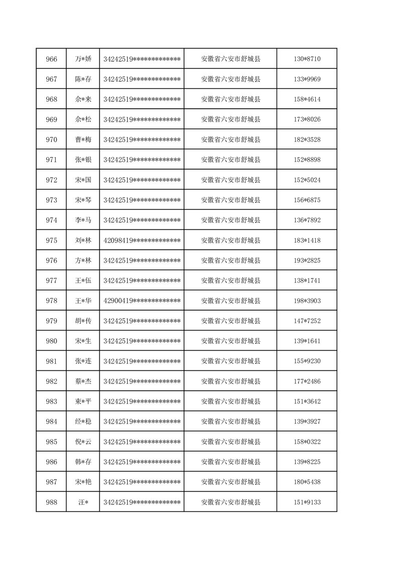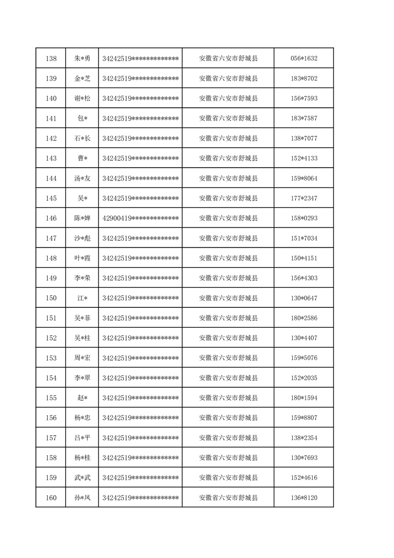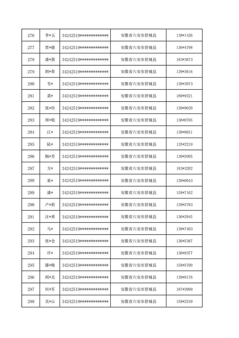【实施情况】舒城县2023年贫困精神残疾人药费补助花名册(一)