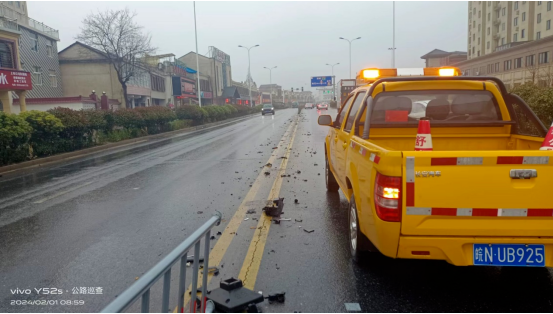 据统计,春运以来,县域干线公路交通量日益增长,县域国省干线发生车辆撞毁公路附属设施事件9起,累计损坏护栏72米、导向牌1块、行道树3棵、路肩125平米。
