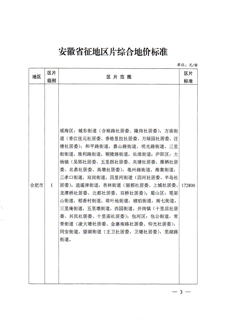 根据《中华人民共和国土地管理法》《安徽省实施〈中华人民共和国土地管理法〉办法》要求,省政府组织开展了全省征地区片综合地价标准调整工作,现将调整结果予以公布,并就有关事项通知如下: