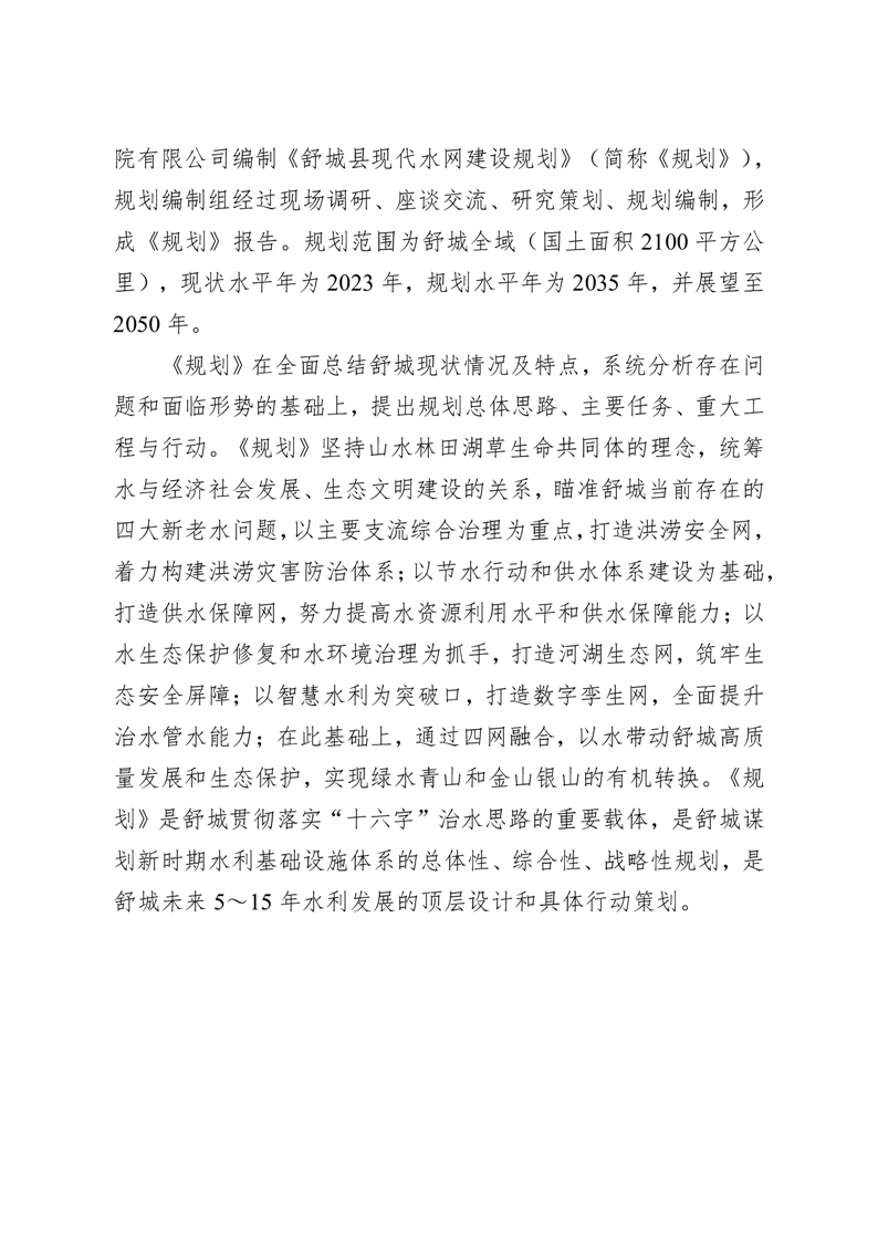 舒城县现代水网建设规划 |