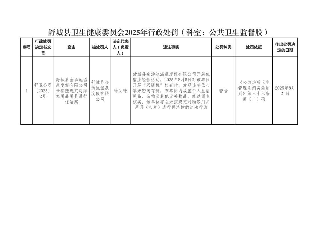 舒城县卫生健康委员会2025年8月份行政处罚01 |
