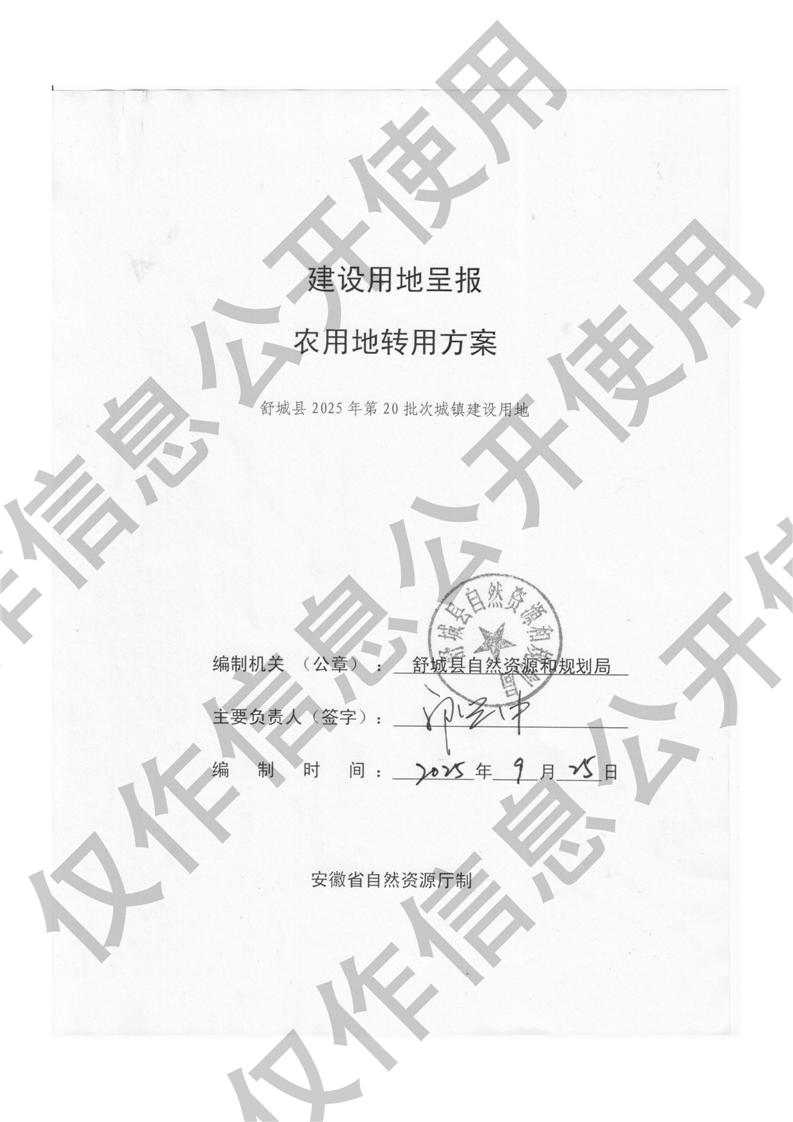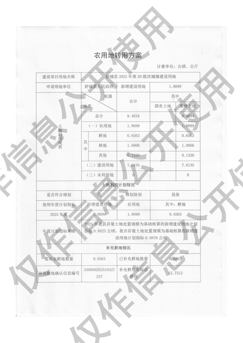 舒城县2025年第20批次城镇建设用地呈报农用地转用方案 |
