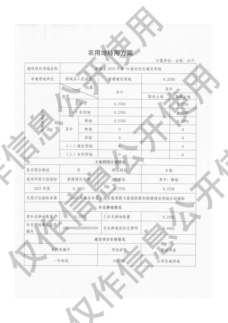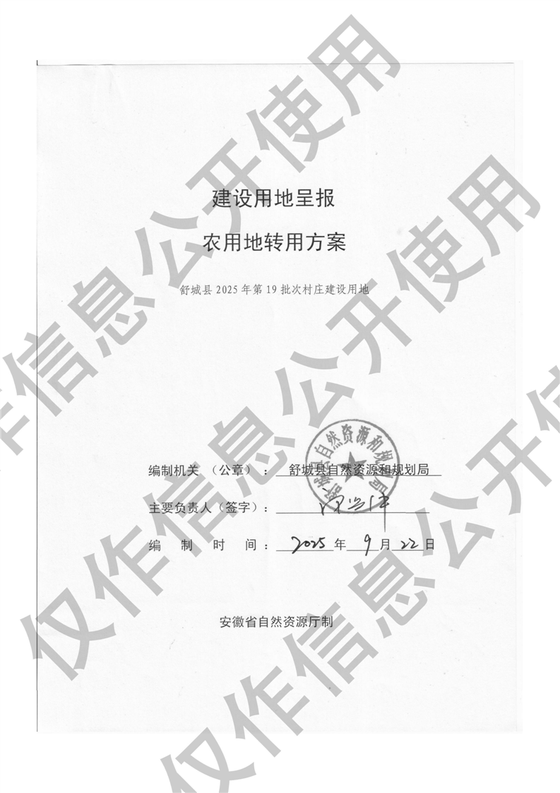 舒城县2025年第19批次村庄建设用地呈报农用地转用方案