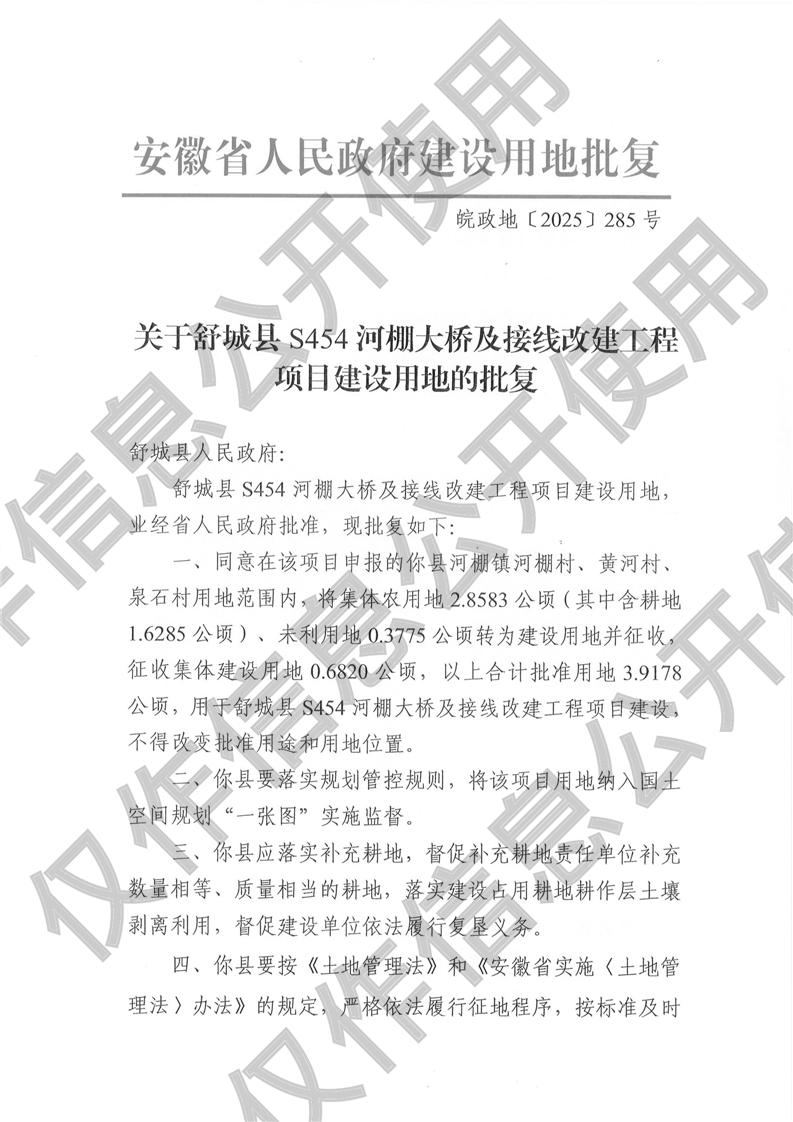 舒城县S454河棚大桥及接线改建工程项目批复 |