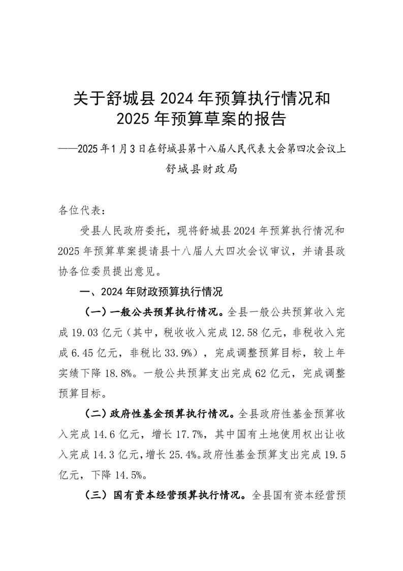 关于舒城县2024年预算执行情况和2025年预算草案的报告 |