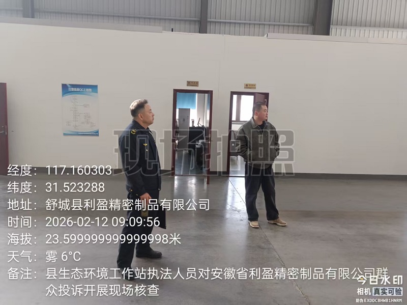 2026年2月12日,县环境环境分局杭埠工作站执法人员对安徽省利盈精密制品有限公司群众投诉开展现场核查。
