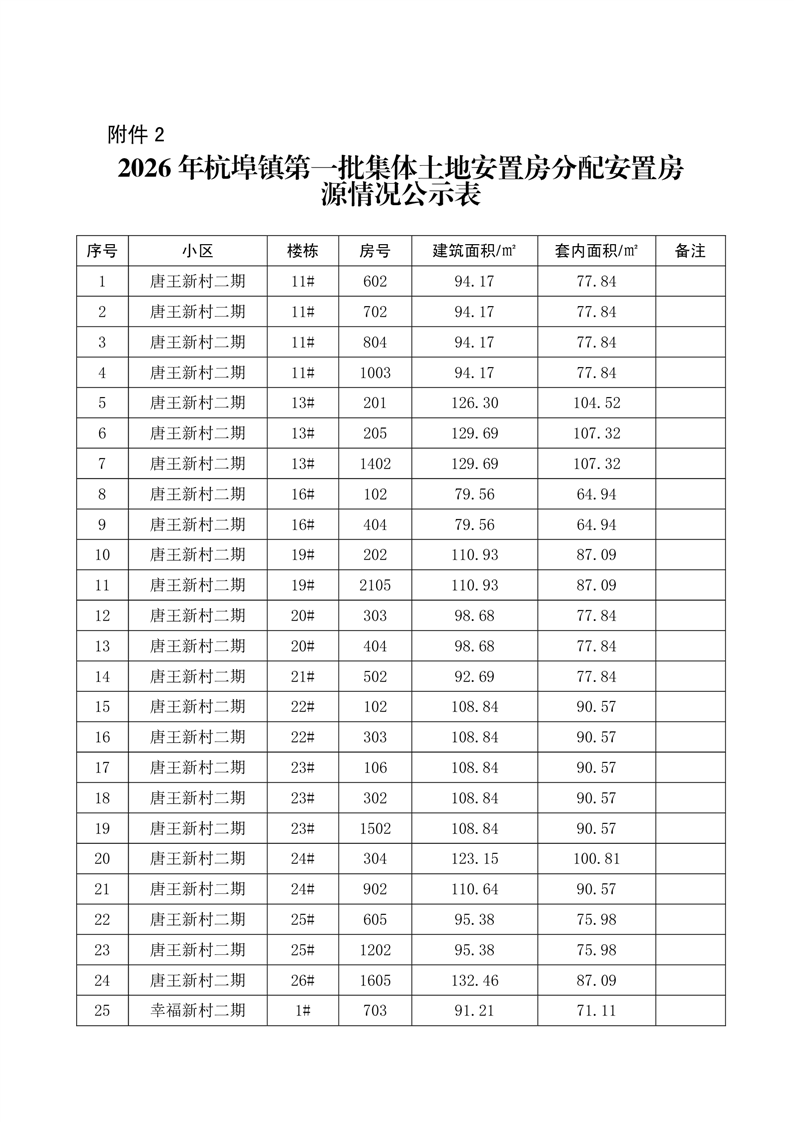 2.2026年杭埠镇第一批集体土地安置房分配安置房源情况公示表