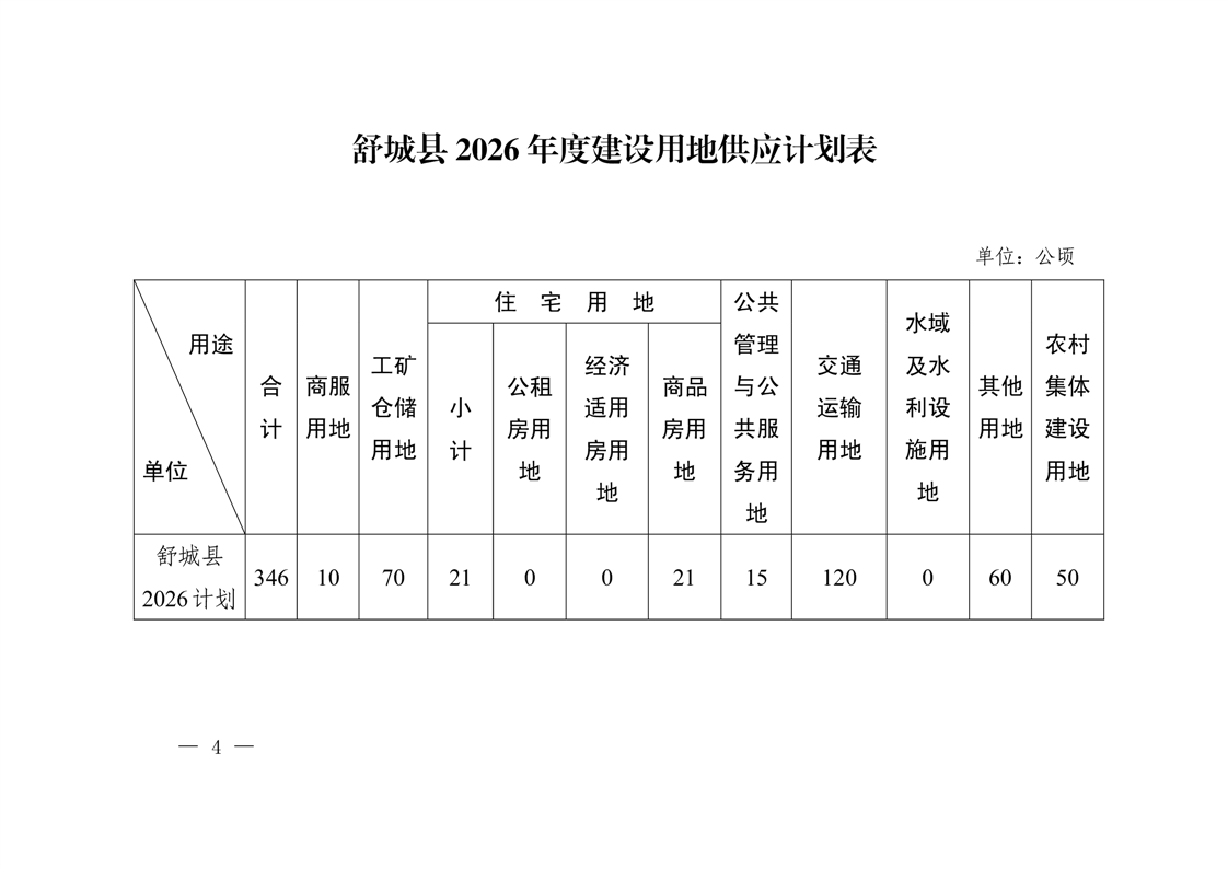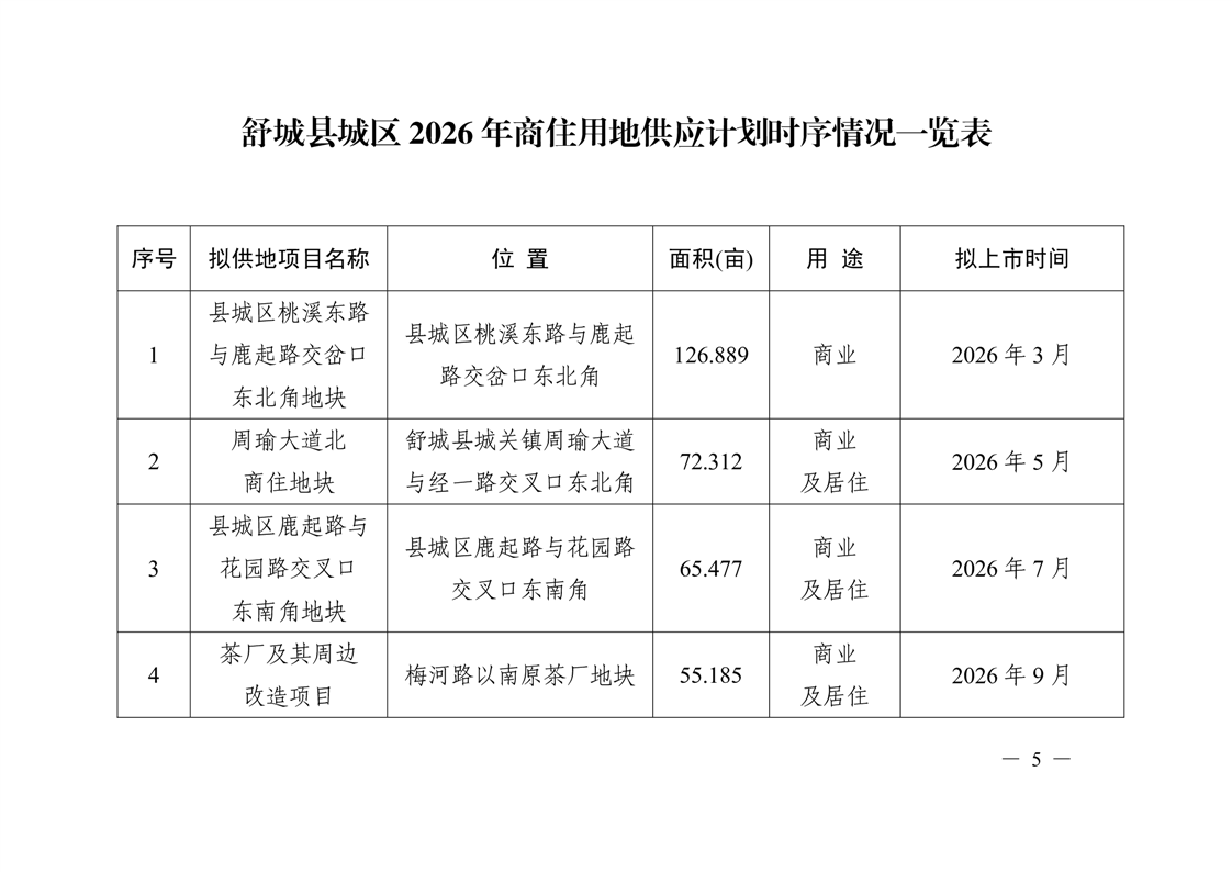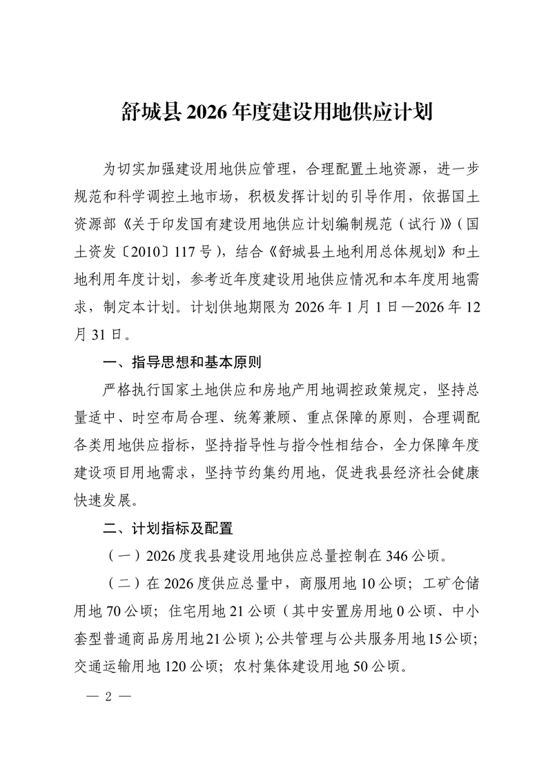 舒城县2026年度建设用地供应计划 |