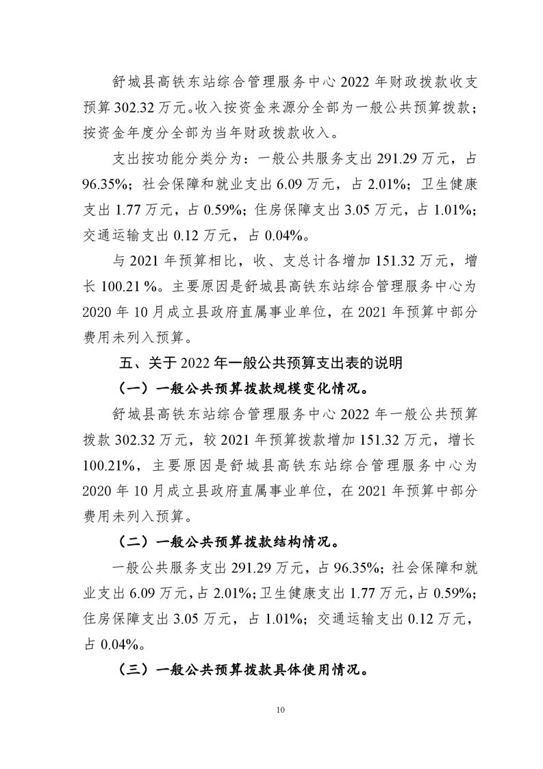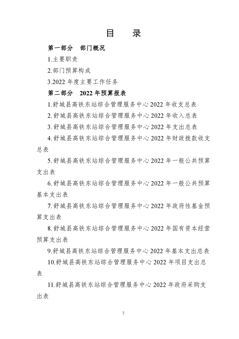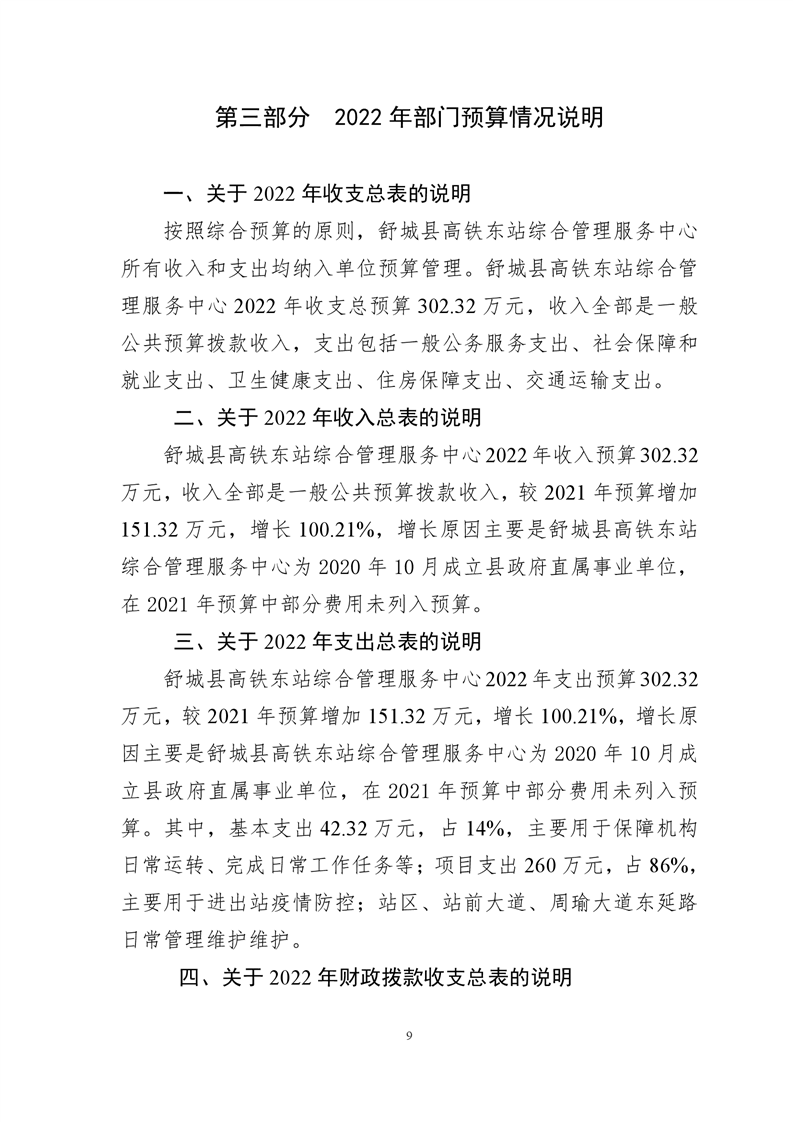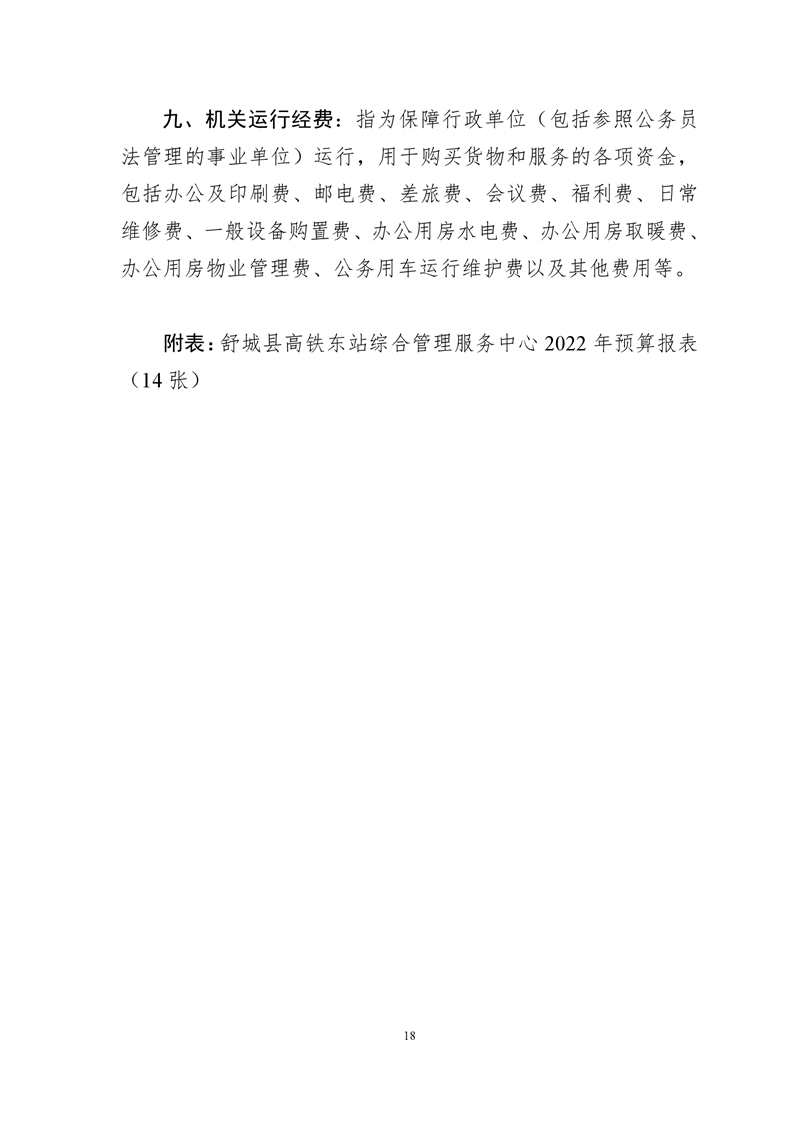 2022年舒城县高铁东站综合管理服务中心预算公开