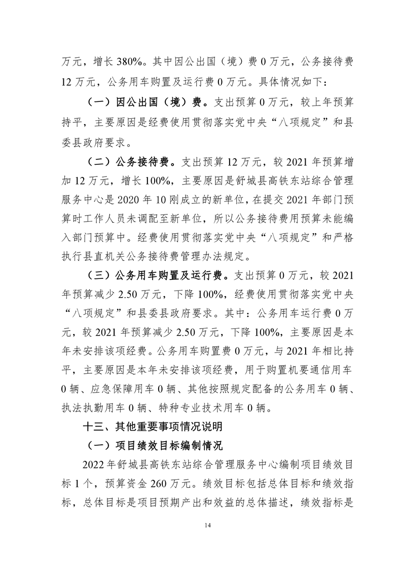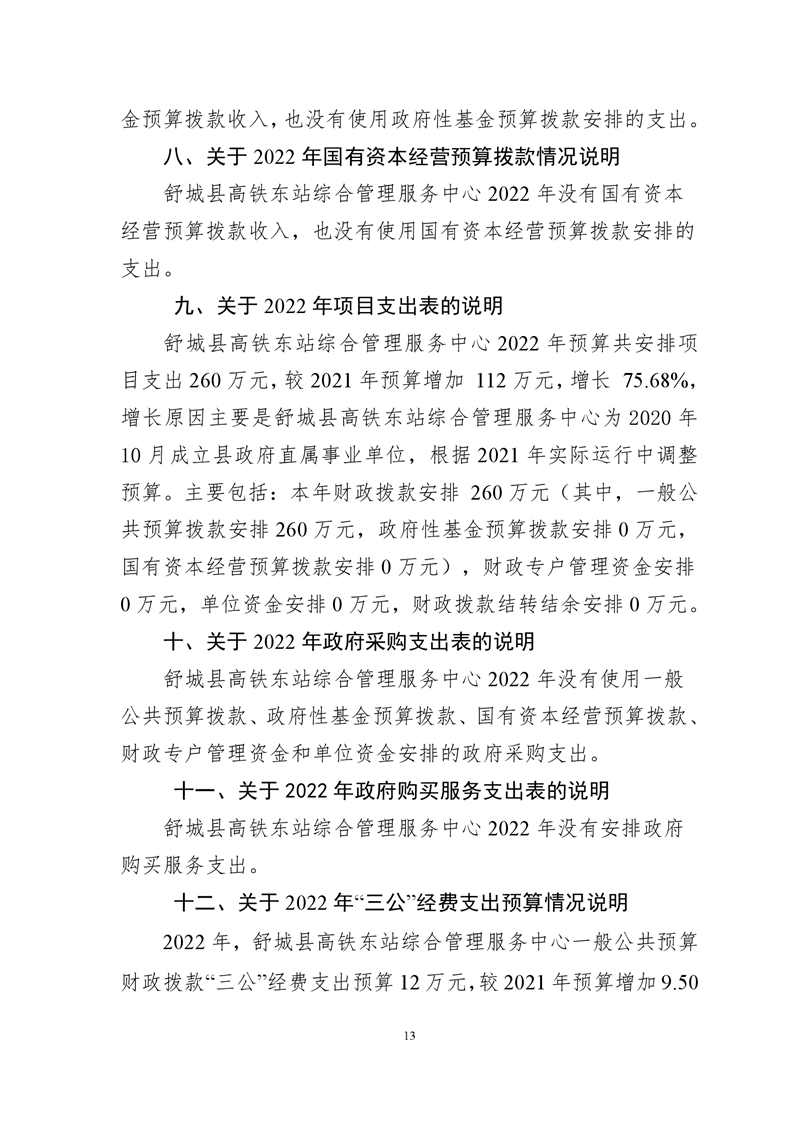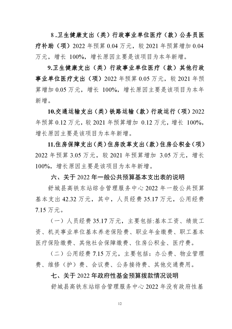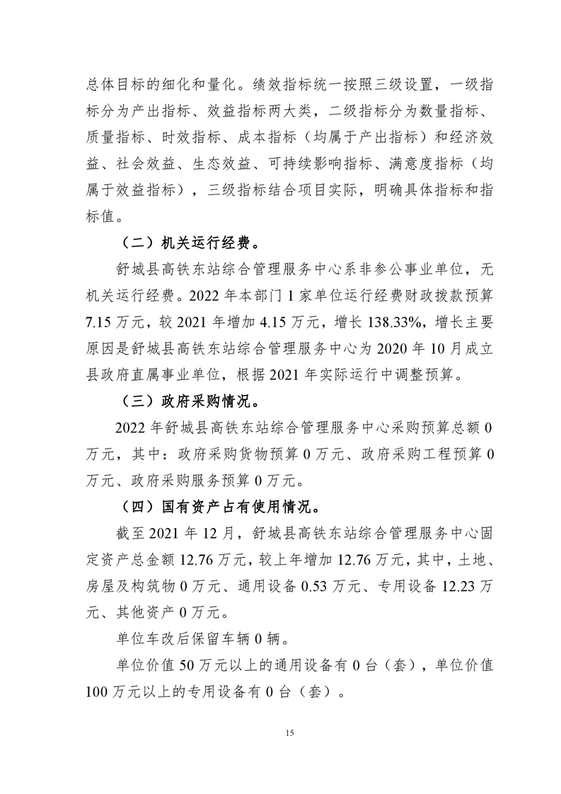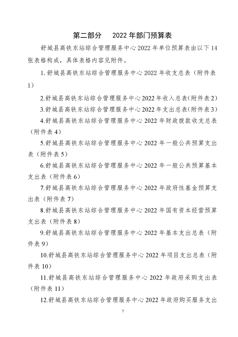 2022年舒城县高铁东站综合管理服务中心预算公开