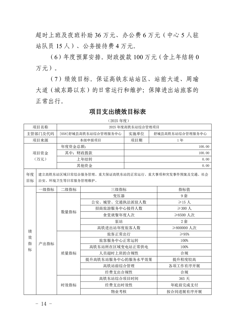 14.舒城县高铁东站综合管理服务中心2025年项目支出绩效目标表.pdf