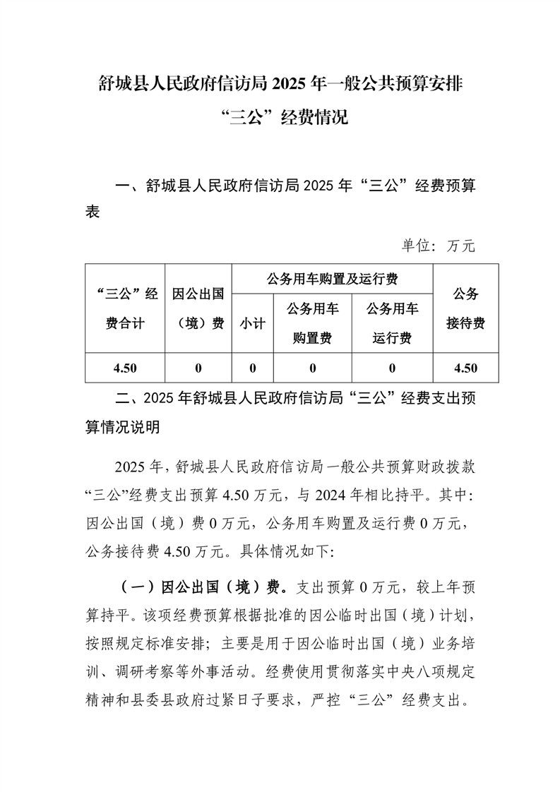舒城县人民政府信访局2025年一般公共预算安排“三公”经费情况.pdf