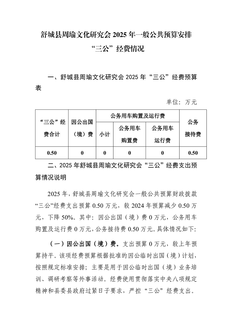 舒城县周瑜文化研究会2025年一般公共预算安排“三公”经费情况