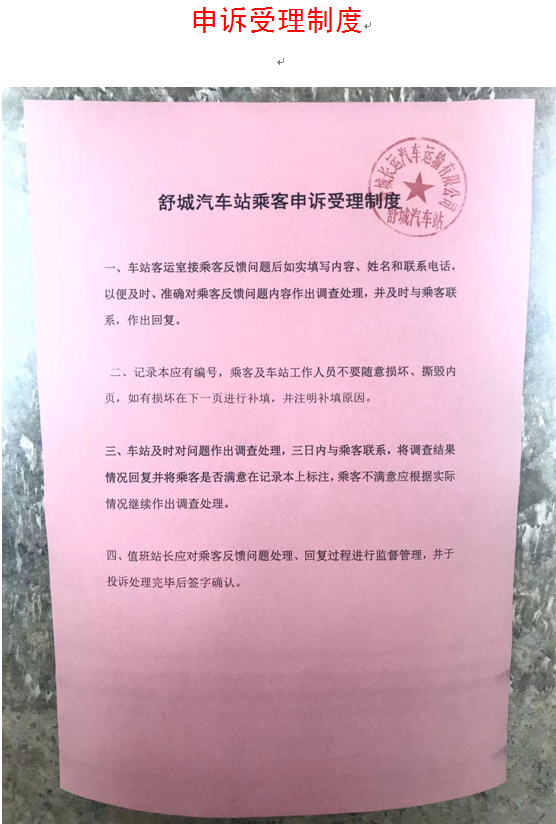 4、建立旅客投诉处理登记簿、意见箱,所有投诉都需记录在《旅客投诉处理纪录台帐》,客运室负责跟踪落实,并定期总结上报(重大投诉及时上报)。