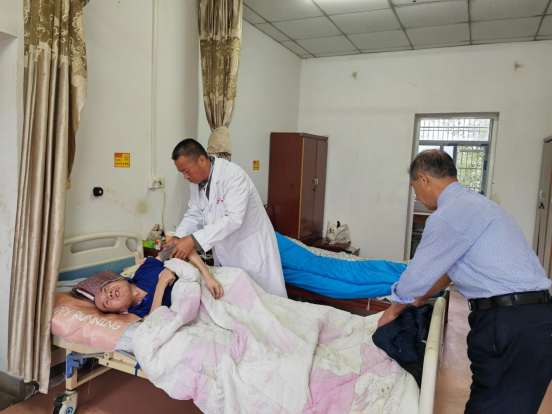 针对行动不便、失能失智老人,团队携带便携设备分组上门服务。在失智老人刘大爷房间,医生安抚老人、检查皮肤,并向护理员示范翻身拍背手法;为每位失能老人建立健康管理档案,方便后续服务。李爷爷动情表示:“出门看病难,没想到医生直接到床边来,太贴心了!”