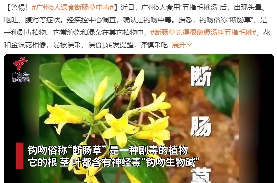 NO.4 错把断肠草花当金银花煲汤,中毒