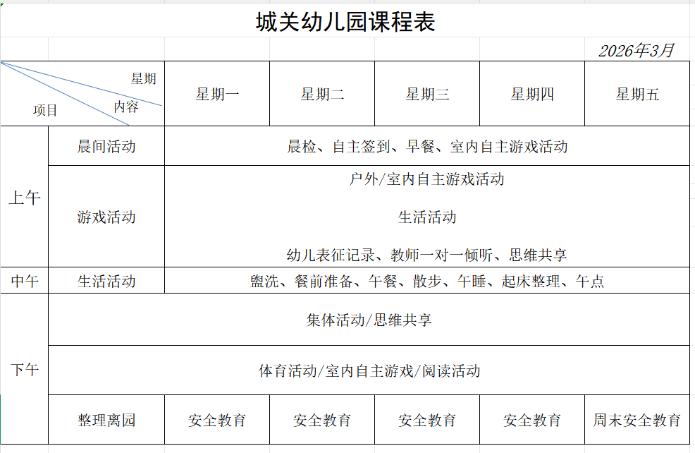 舒城县城关幼儿园2026年春学期课程设置方案与教学计划