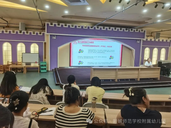 为进一步提升我园教师的专业素养,推动教育教学工作规范化、科学化开展,我园组织了《幼儿园教师专业标准》专题培训。以 “对标标准,精进专业” 为主题,通过解读标准、案例分析等形式,重点解读了专业理念与师德、专业知识、专业能力三大维度的具体要求,并结合幼儿园教育实际,聚焦幼儿园教师关键能力展开深入学习。