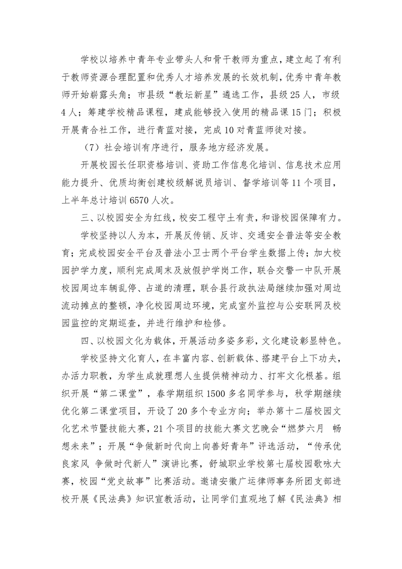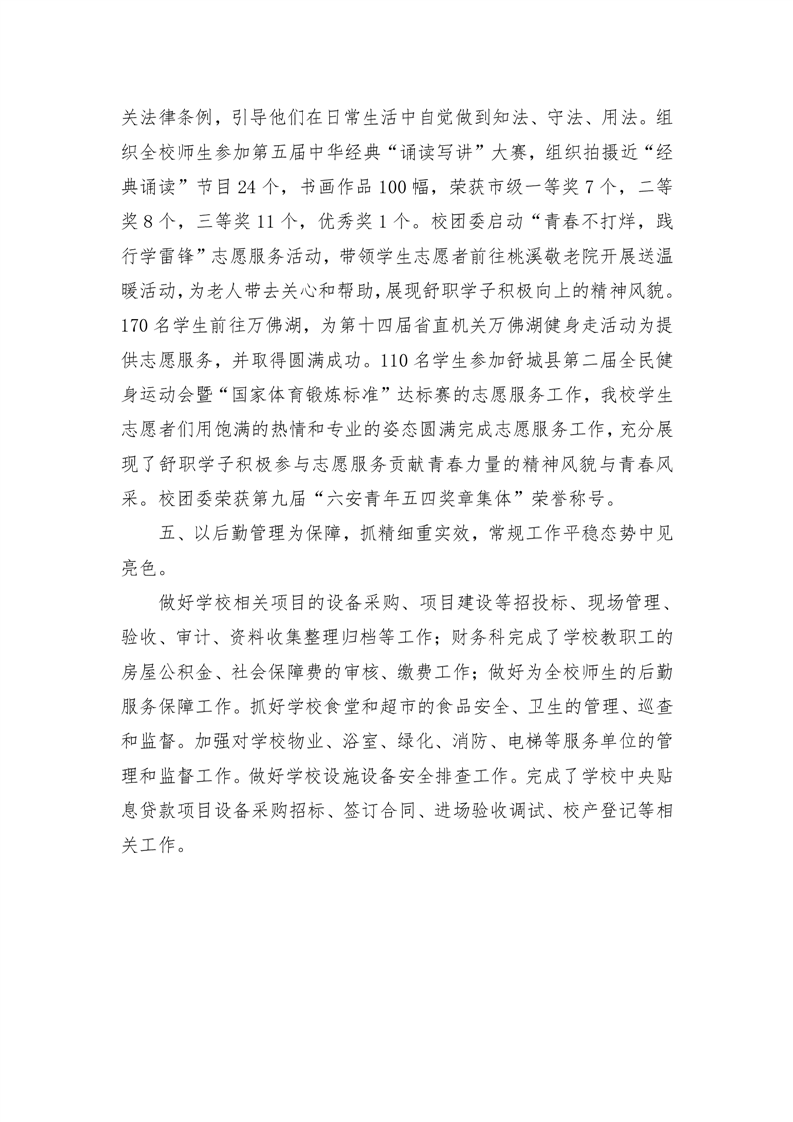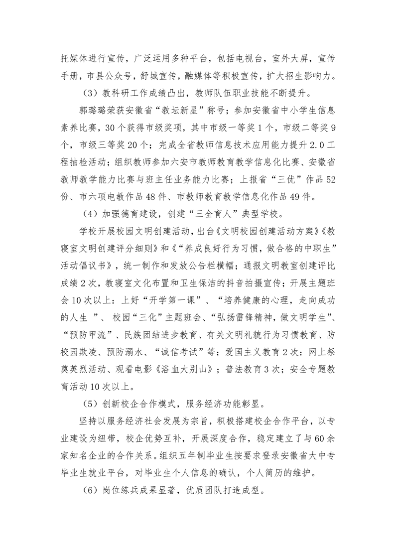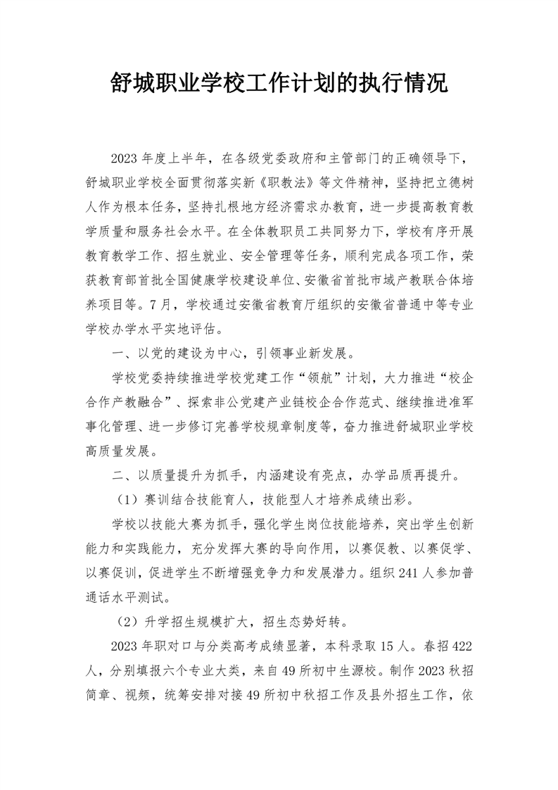 舒城职业学校工作计划的执行、完成情况