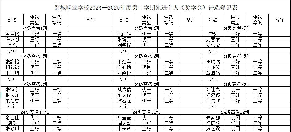 舒城职业学校学生评优评先