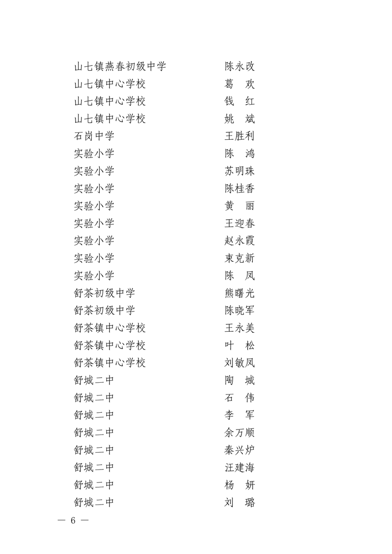舒城县人民政府关于表彰舒城县优秀教师和先进教育工作者的通报 (教师评优结果)