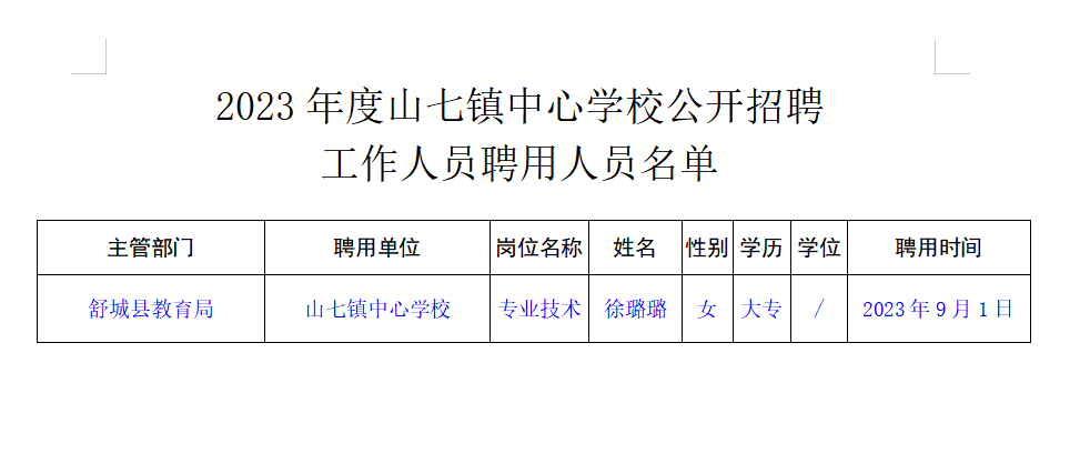 舒城县山七镇中心学校2023年拟聘用人员名单