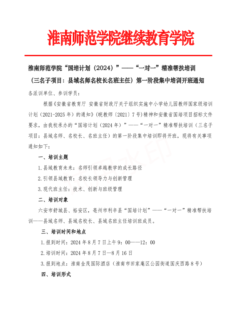 淮南师范学院“国培计划(2024)”——“一对一”精准帮扶培训
