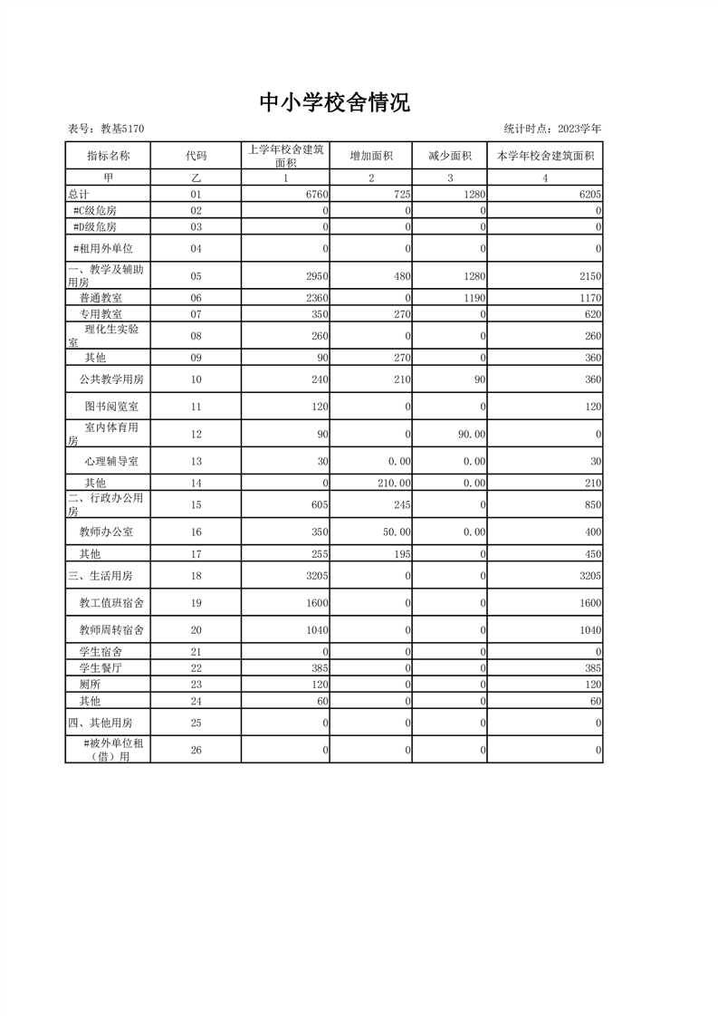 舒城县千人桥镇重阳初级中学2023年办学条件数据