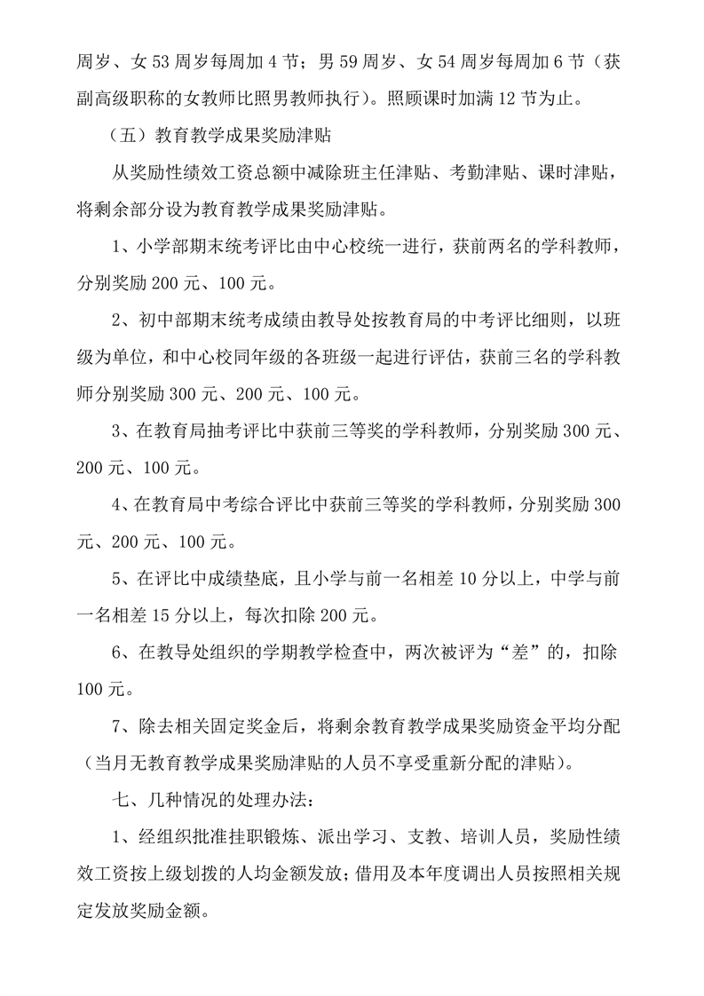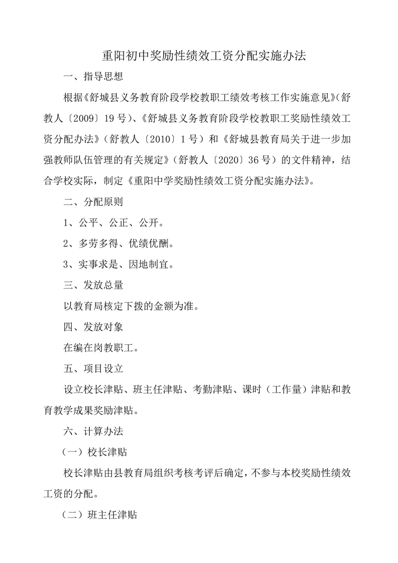 舒城县千人桥镇重阳初级中学绩效考核及绩效工资分配办法