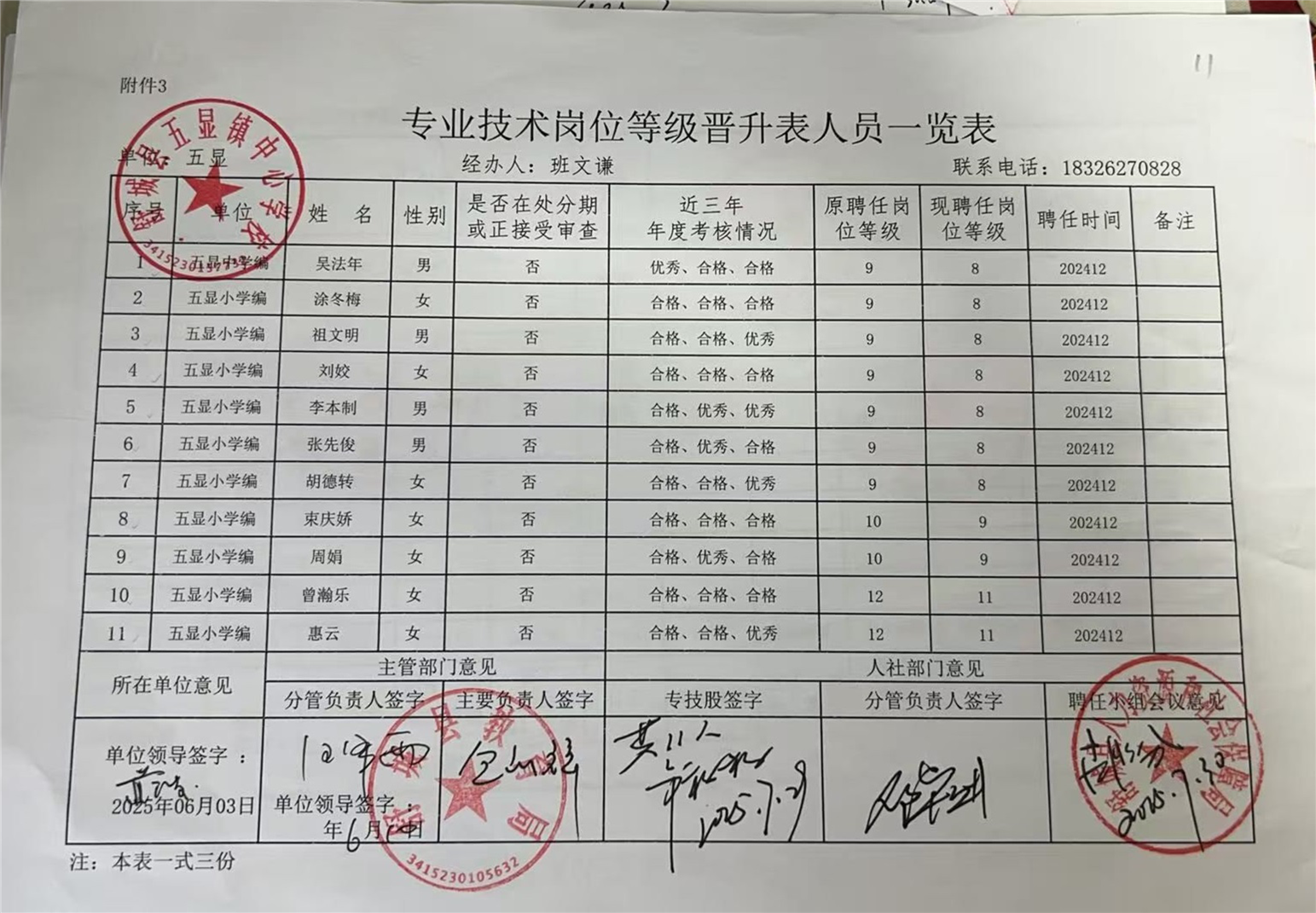 舒城县五显镇中心学校2025年岗位晋升结果