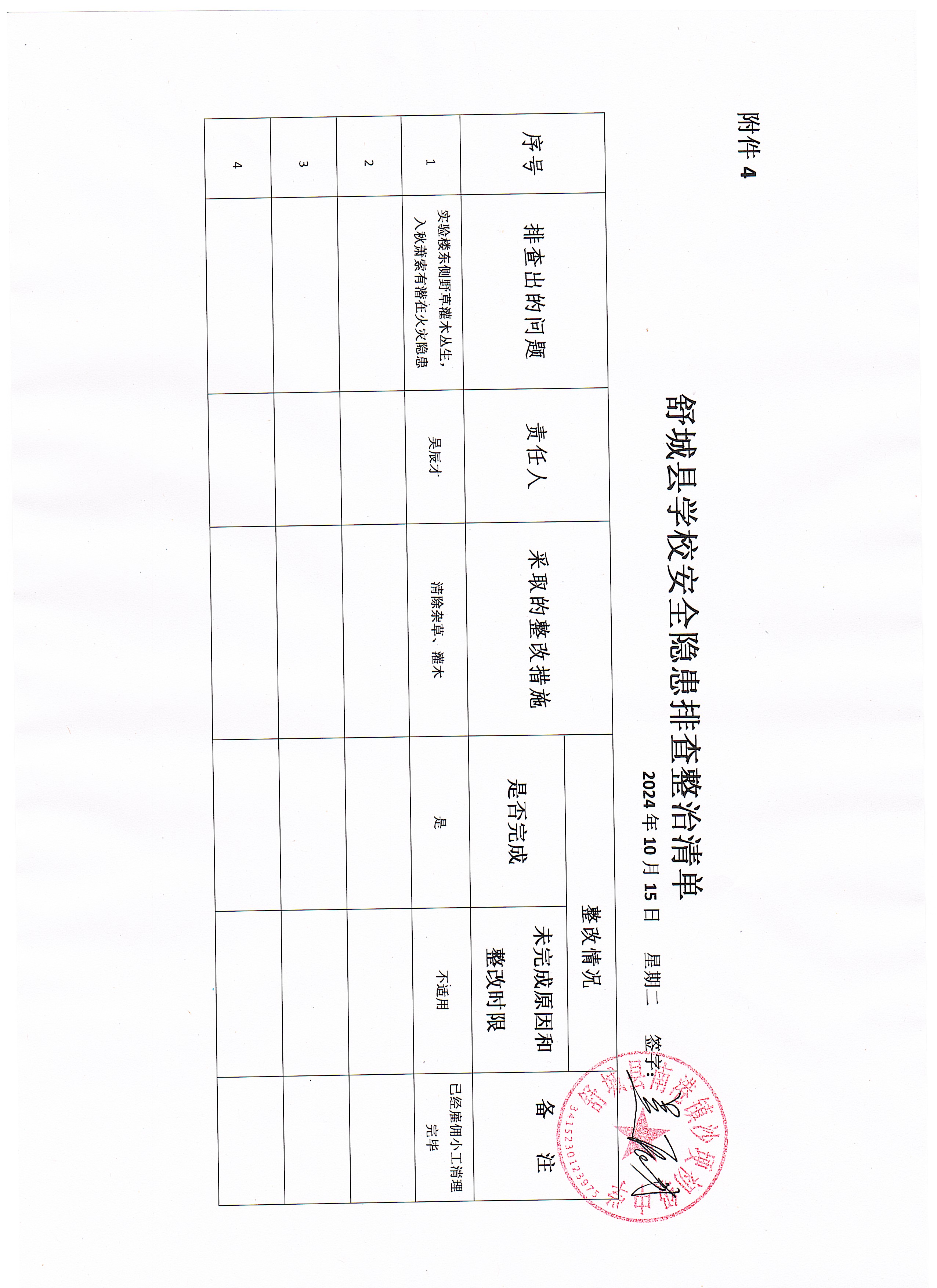 舒城县南港镇沙埂初级中学2024年10月安全隐患排查及整改情况
