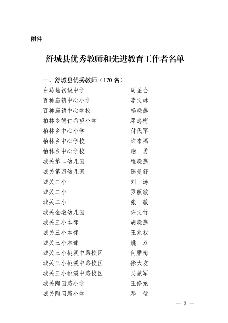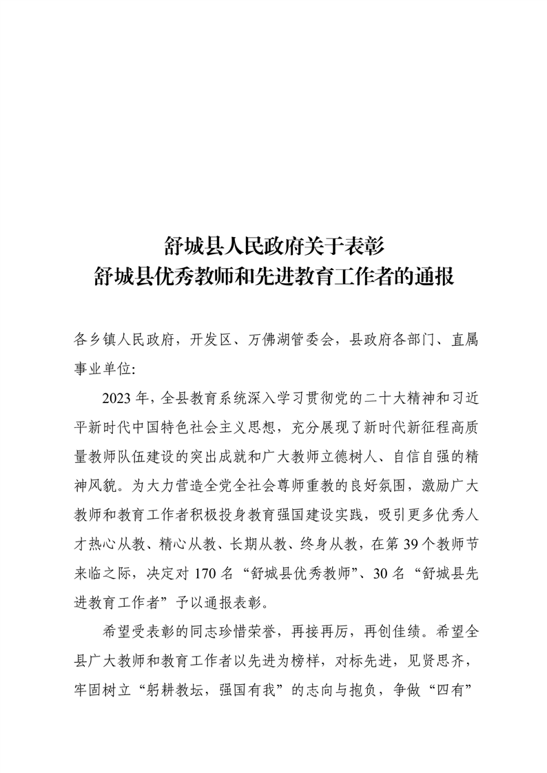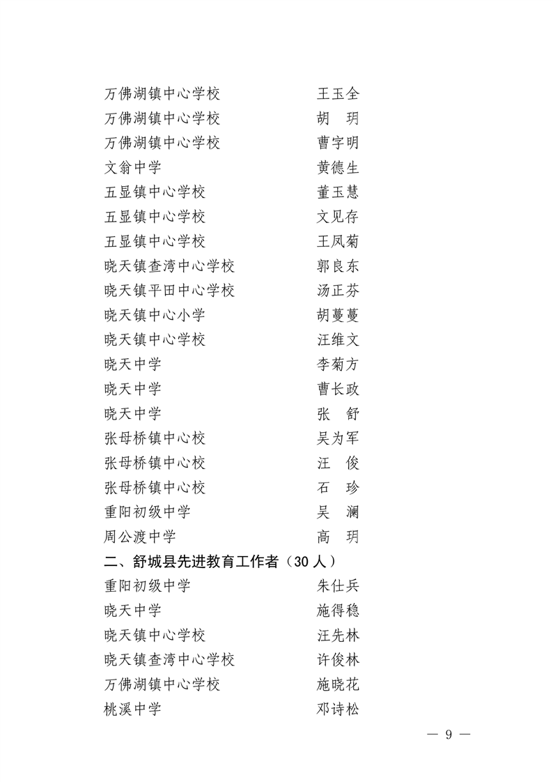 舒城县柏林乡中心学校获舒城县优秀教师和先进教育工作者的结果通报