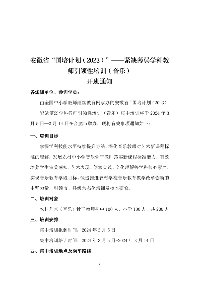 安徽省“国培计划(2023)”——紧缺薄弱学科教师引领性培训(音乐)开班通知