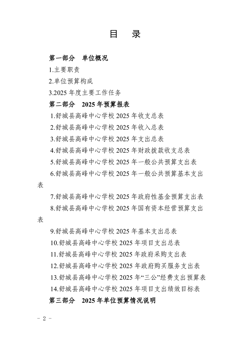 舒城县高峰中心学校2025年度预算公开