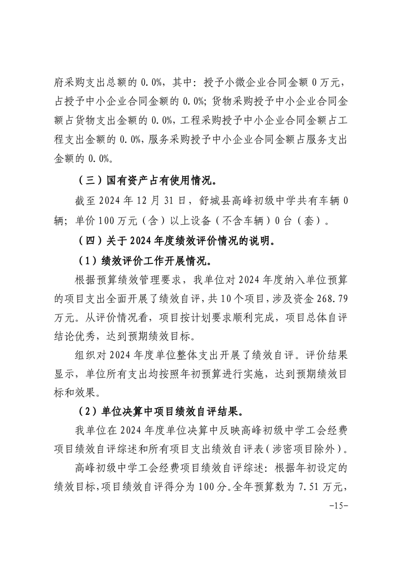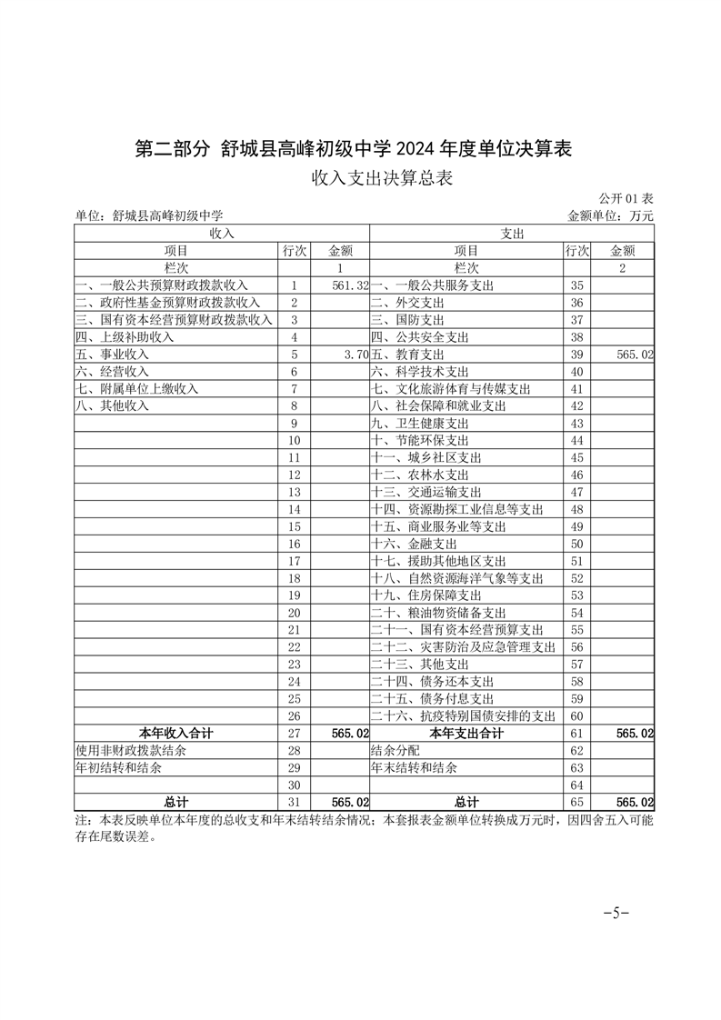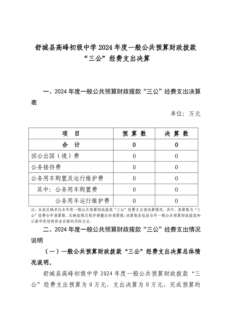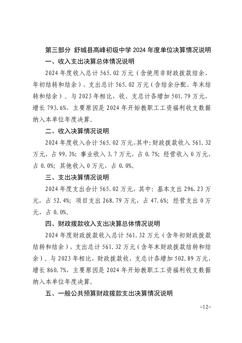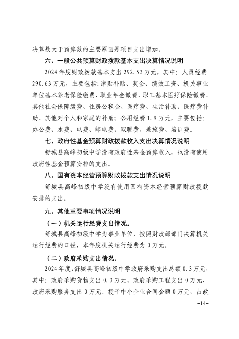 高峰初级中学2024年决算信息