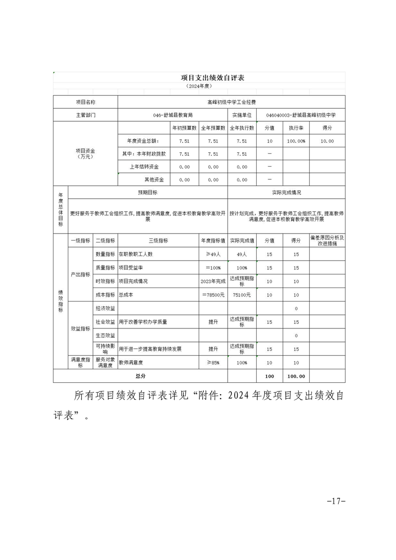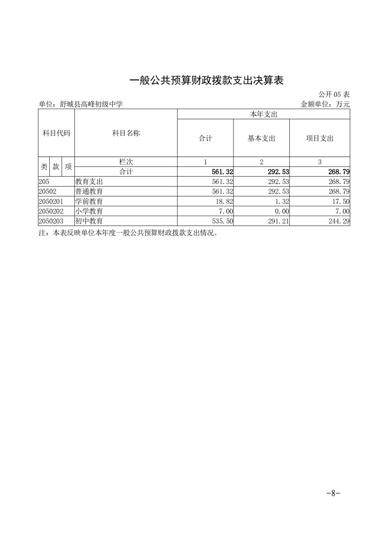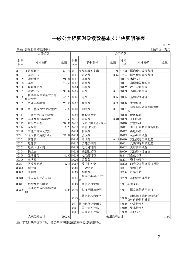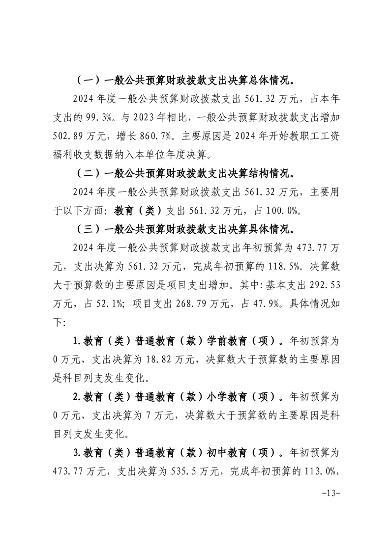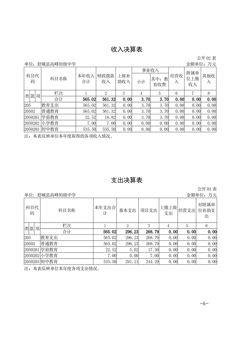 高峰初级中学2024年决算信息