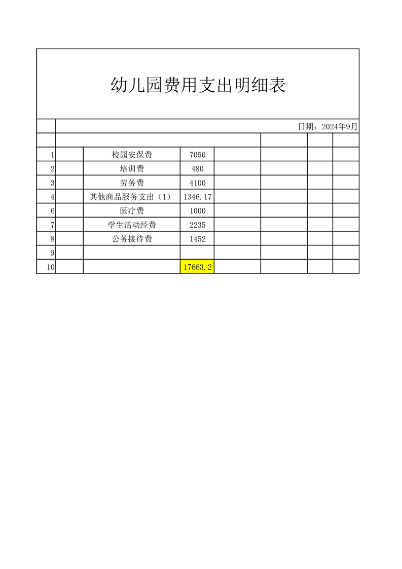 高峰乡中心幼儿园2024年秋学期收费情况如下: