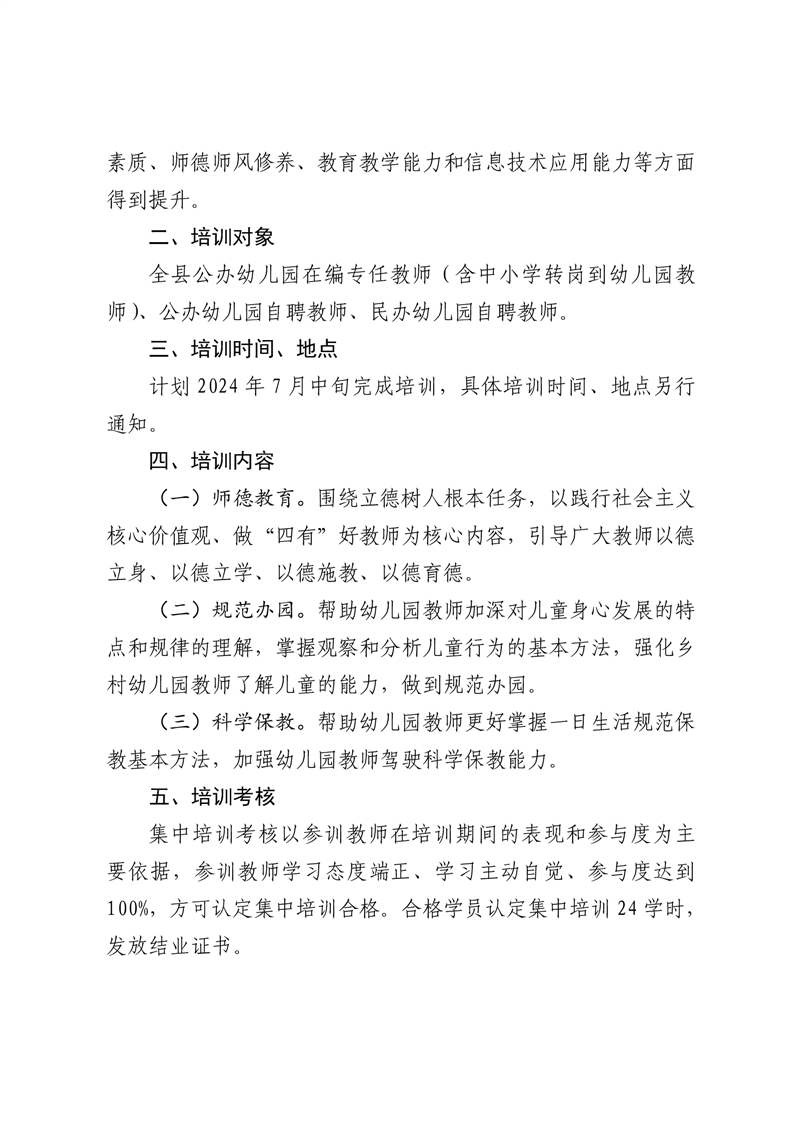 2024年高峰乡中心幼儿园教师培训通知