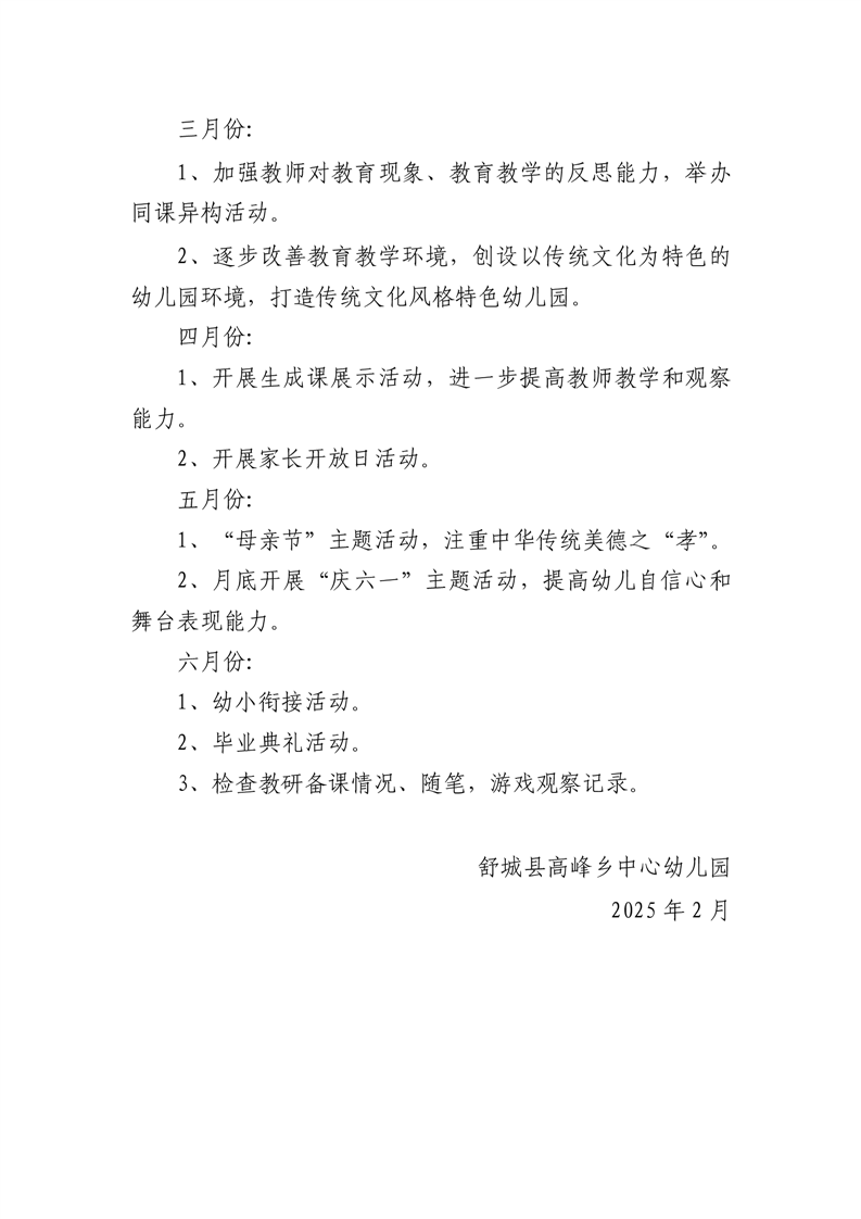 2025年春学期高峰乡中心幼儿园教学工作计划