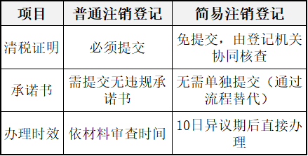 简易注销(省事):网上提交简易注销后,不用开清税证明,但是需等10日税务部门反馈后才可以注销。