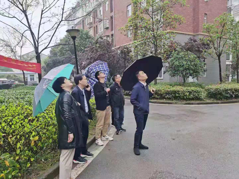 县住建局现场勘察清溪园小区外墙保温层脱落问题