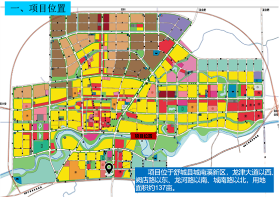 舒城亿坤国际汽车城项目位于县城区龙津大道以西、阙店路以东、龙河路以南、城南路以北,总用地面积91269.56平方米,规划总建筑面积116604.77平方米,由安徽亿坤车业有限公司负责开发建设。市场分为六大区域,分别为:电子商务区、4S店集群区、其他汽车销售区(含新能源汽车推广区、汽车后市场区、汽车贸易经销区)、二手车交易区、商务商业配套区、车管所,其中车管所为代政府建设项目。