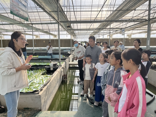 孩子们在县农科所副所长阮琦琦的带领下,参观了水培生菜基地、水稻育种基地和棉花育种基地,对水培植物的生长特点、水稻棉花从种子发芽到果实成熟的生长周期、不同水稻品种的特点等有了深入的了解。“同学们,你们知道生菜在水里生长有什么好处吗?”“你们知道我们平时吃的粽子是用哪种稻米做的吗?”“棉花可以用来做什么呢?”......一个个有趣的提问,引导孩子们用发现和探究的科学视角去思考问题,解决问题。