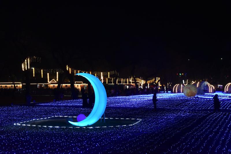 夜游“焕新”,精彩不断。华灯初上,景区“越夜越美丽”。坝前公园,七色彩灯似繁星闪烁,水幕激光如金龙游动,各类花灯交相辉映,编织出一场梦幻的光影盛宴。装饰一新的精品画舫在灯光映衬下更显古色古香、光彩夺目。非遗英歌舞在夜间巡游,簪花汉服歌舞、新春火壶表演、敦煌鼓上舞等节目轮番上阵,赢得广大游客的一致好评。烟花瀑布如银河倾泻,户外DJ蹦迪、篝火晚会燃爆全场,赢得呼声不断。丛林卡丁车、彩虹滑道等娱乐项目也为游客增添了欢乐。