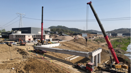4月6日,舒城县杭埠河沃孜大桥建设项目现场机器轰鸣,正式启动箱梁架设工作。