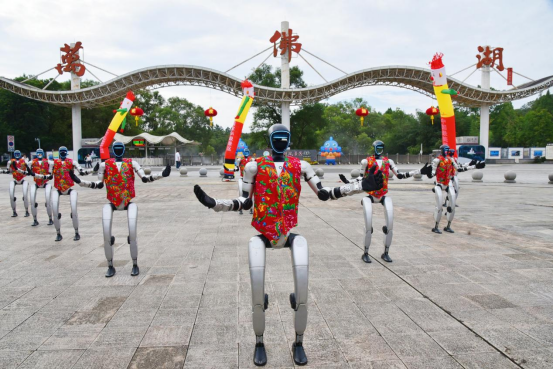上午游客中心处,春晚同款智能机器人正式“上岗”,10台身着大花袄的机器人随着欢快的音乐扭动身躯,动作流畅又充满节奏感,同时还能够为游客普及安全文明知识,用科技温度提升游览便捷度。“没想到机器人跳舞这么灵活,还能和游客互动,科技感和艺术性都拉满了,简直酷到没朋友!”来自合肥的游客李女士举着手机记录全程,她表示特意带着孩子来体验这场“AI+艺术”的视觉盛宴。