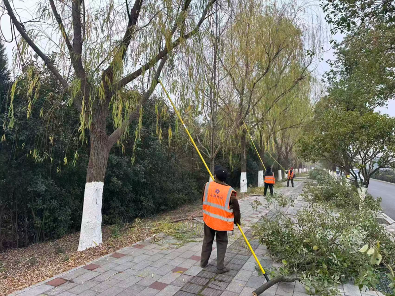 当前正值冬季绿化养护关键期,园林所抢抓晴好天气,系统推进各项作业。全面启动苗木防寒工作,选用环保型涂白剂对管养绿地区域内乔灌木进行统一规范刷白,目前该项工作已基本完成,为苗木安全越冬筑牢了屏障。同步开展冬季清园专项行动,重点清理绿廊、绿化带及草坪区域的枯枝、落叶和杂草,日均清理面积约5万平方米;针对机械作业不便区域,采用鼓风机辅助清扫并集中清运,切实消除火灾隐患,保持绿地整体洁净。同时,有序推进整形修剪工程,依据树木生长特性和公共安全需求,合理修剪影响交通信号、路灯照明及行人通行的枝条,并对紫薇、海棠等花灌木实施精细化整形,疏剪内膛枝、病虫枝,促进养分集中,为来年花繁叶茂奠定基础。