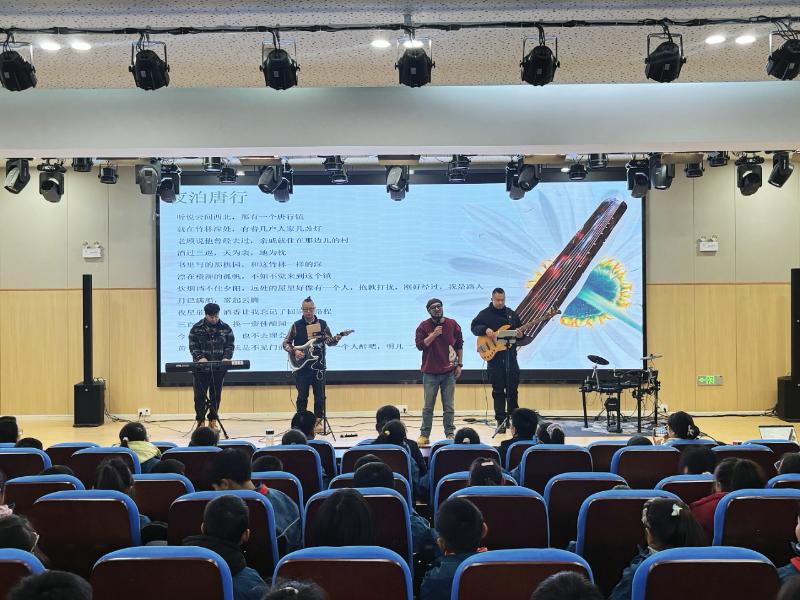 捐赠仪式后,来自青浦区青艺服务中心的青城乐队为与师生带来了文化导赏活动。他们用现代音乐的形式生动演绎《夜泊唐行》、《渔父词》、《小园即事》等经典诗词,推动中华优秀传统文化传承。孩子们抢答、跟唱、独唱,现场气氛热烈,乐队老师现场赠送礼物环节更是将活动推向了高潮。