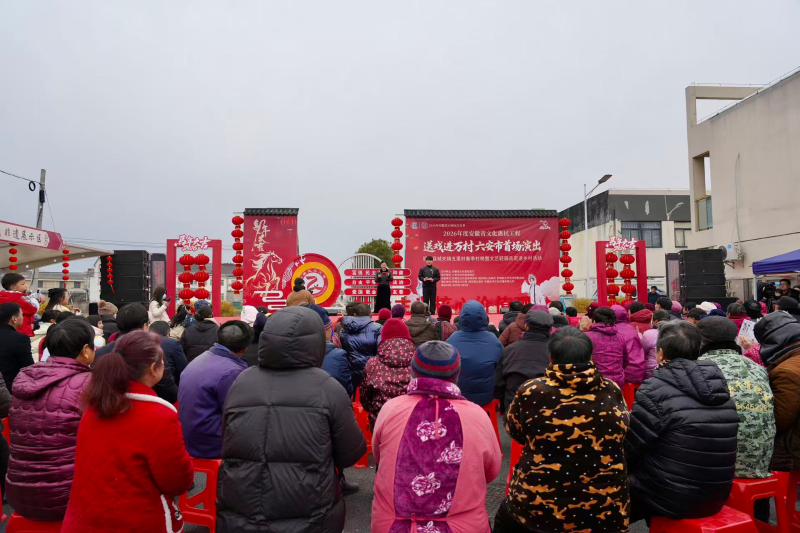 2月9日下午,2026年度安徽省文化惠民工程“送戏进万村”六安市首场演出活动在舒城县城关镇五里村文化广场热闹开锣。此次活动由安徽省文化和旅游厅主办,六安市文化和旅游局承办,舒城县文化旅游体育局、城关镇人民政府、舒城县文学艺术界联合会联合实施,舒城县文化馆、城关镇五里村、安徽未来文化传播有限公司共同呈现,以多元的艺术形式点亮基层群众的新春生活。